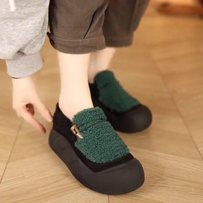 寒い季節にぴったりの暖かいレディーススリッポンです。 裏起毛素材で足元をしっかり保温し、厚底設計でスタイルアップ効果も抜群。 軽量で歩きやすく、デイリーユースに最適な一足です。