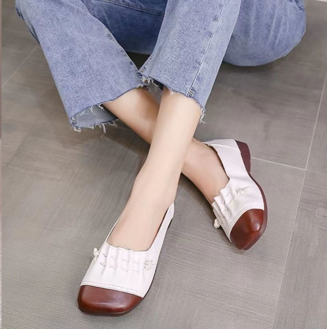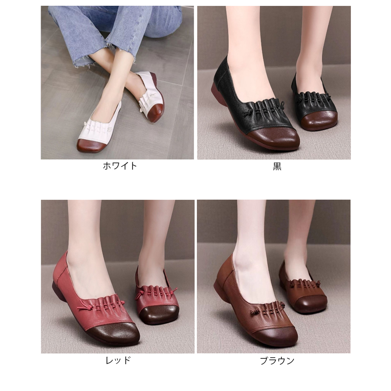 ■コメント ・幅広のラウンドトゥで窮屈感なくゆったり履けます。 ・ソフトな素材で足にフィット。 ・フラットで長い時間歩いても疲れにくい快適な履き心地です。 ・シンプルで色んな服装に合わせやすく、デイリー使いにはもちろんオフィスシーンでも◎。 ・耐摩耗性、滑り止め加工された凸凹アウトソールで安全です。 ■サイズ(単位:約cm) 22.5cm(35)、23.0cm(36)、23.5cm(37)、24.0cm(38)、24.5cm(39)、25.0cm(40)、25.5cm(41) ■ヒール高さ 約2.5cm ■カラー 商品画像に記載 ■素材 合成皮革、合成底