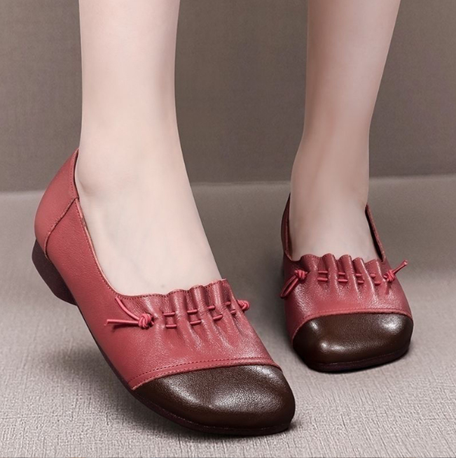 足先の異素材切り替えデザインがおしゃれなアクセント。