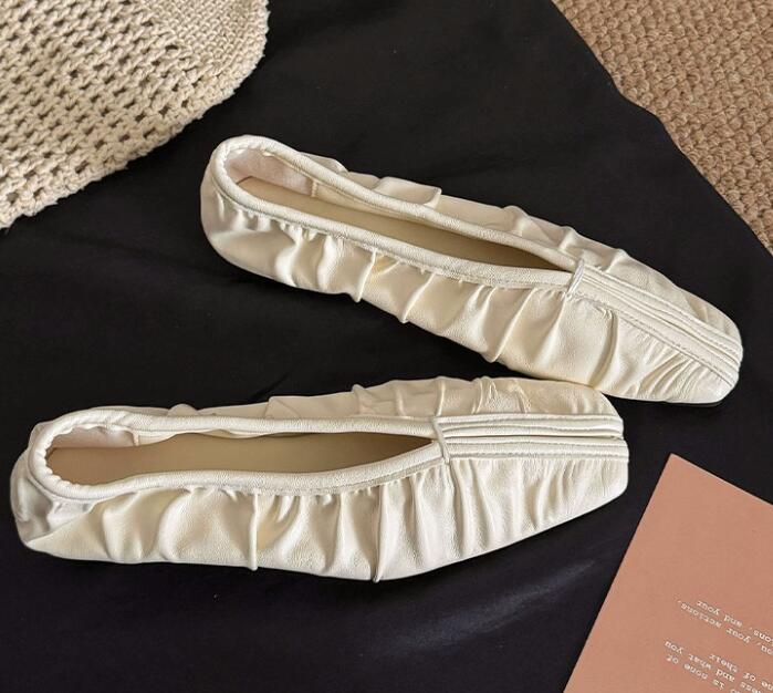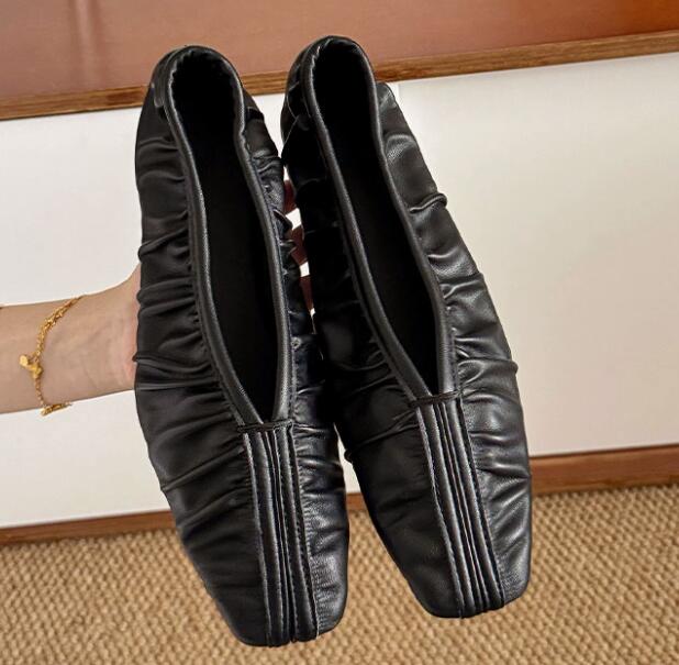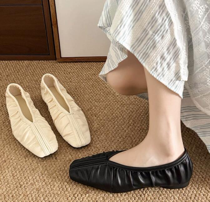上品なスクエアトゥデザインが魅力的なレディーススリッポン。