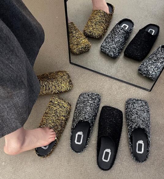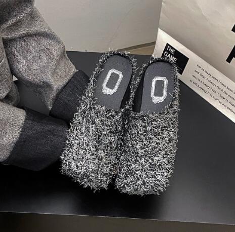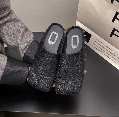 上品なツイード風素材を使用したレディーススリッポンサンダルです。